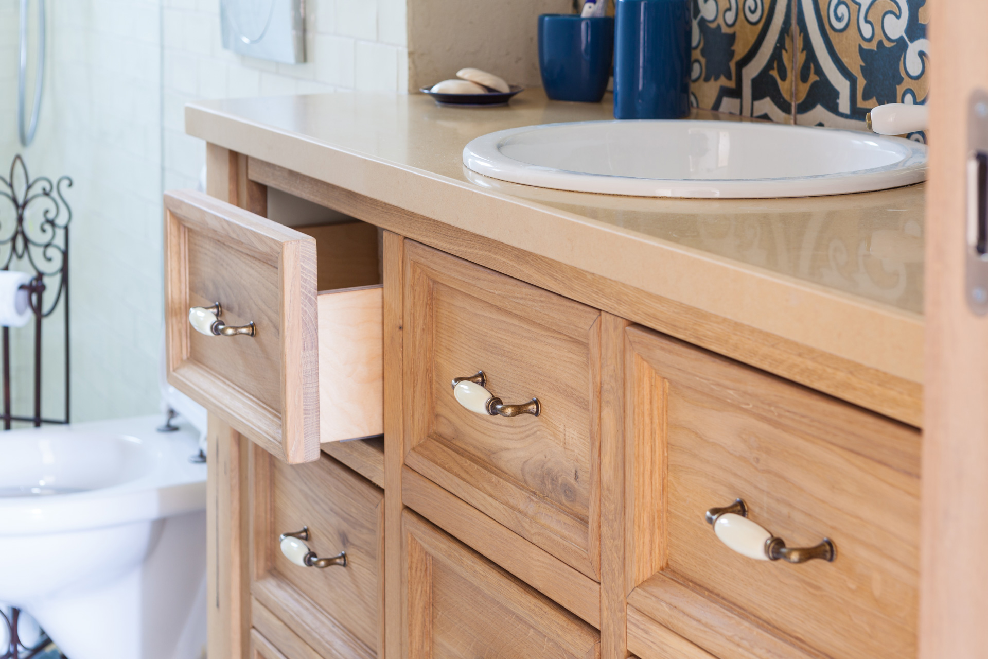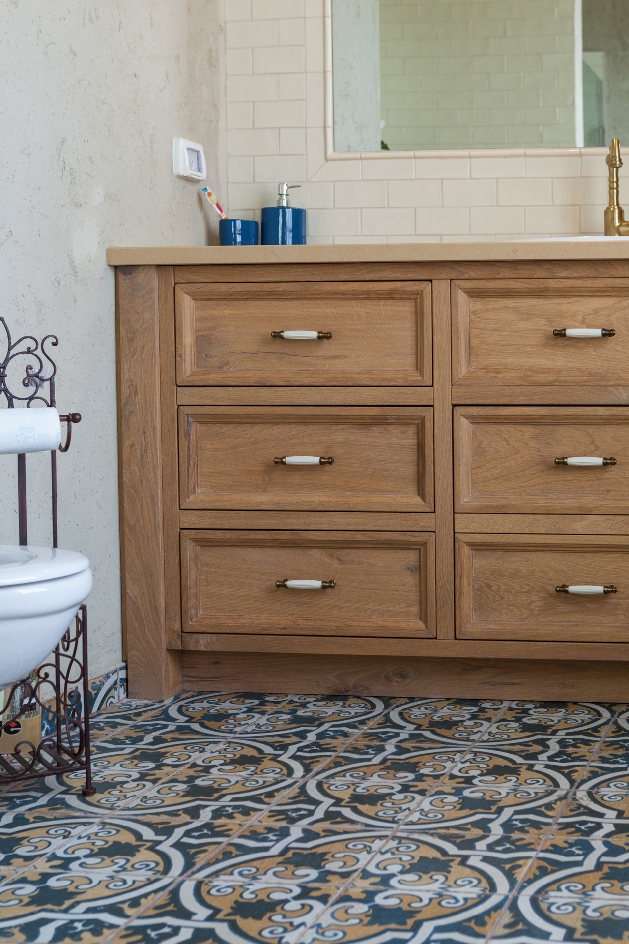 הדרישות שלי היו גבוהות. רציתי מטבח כפרי כמו באגדות, וארונות אמבטיה מעוצבים וצבעוניים בסגנון כפרי.