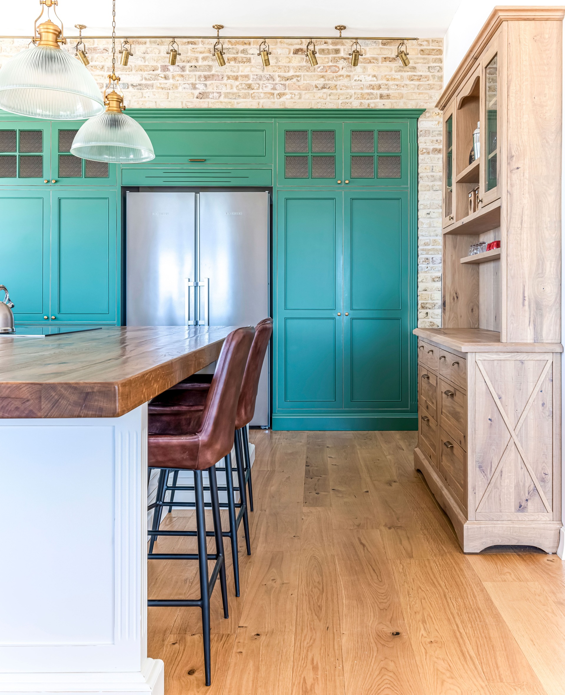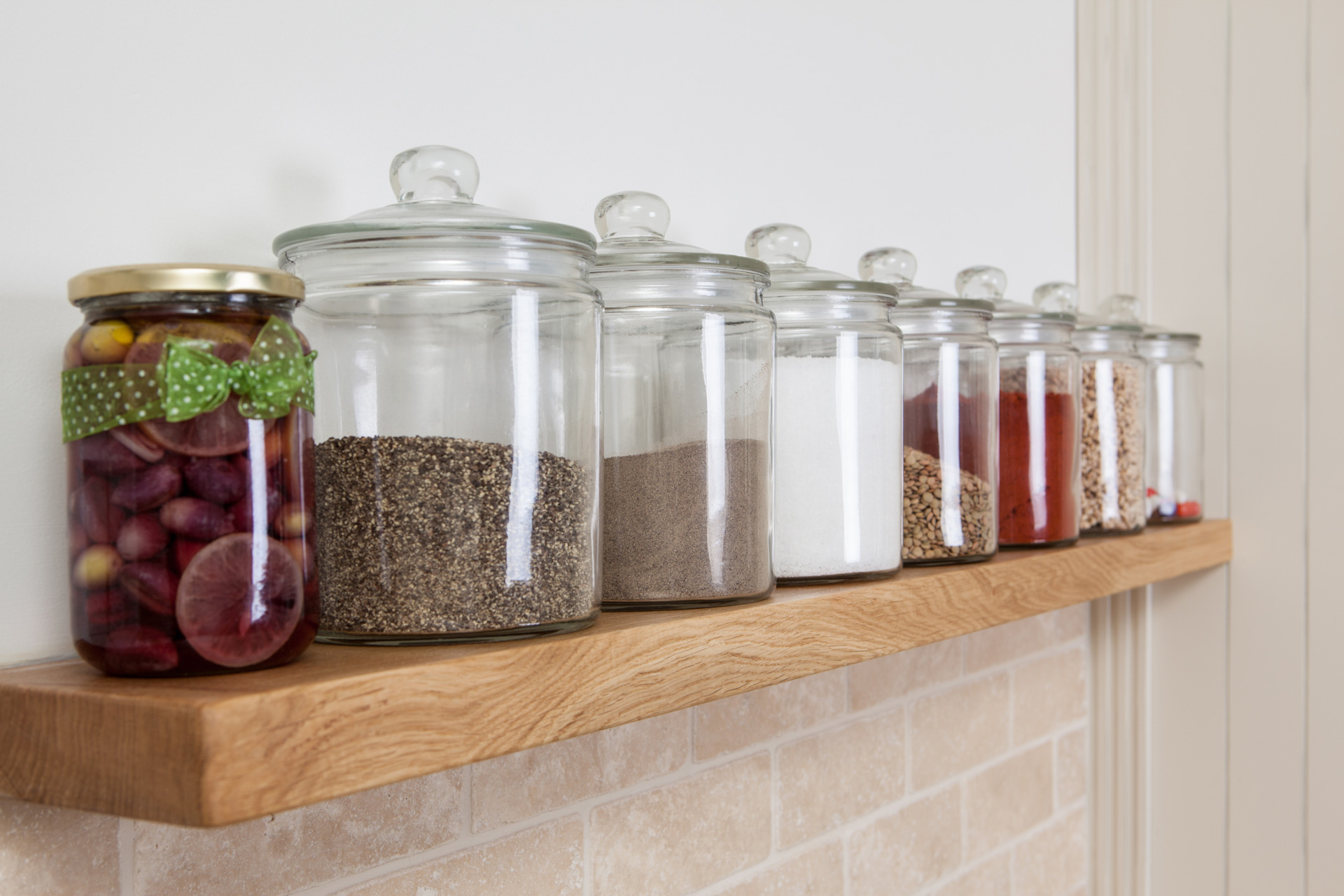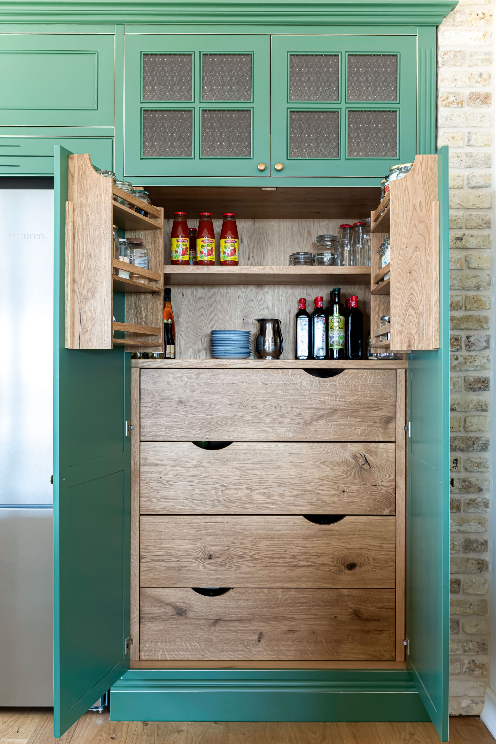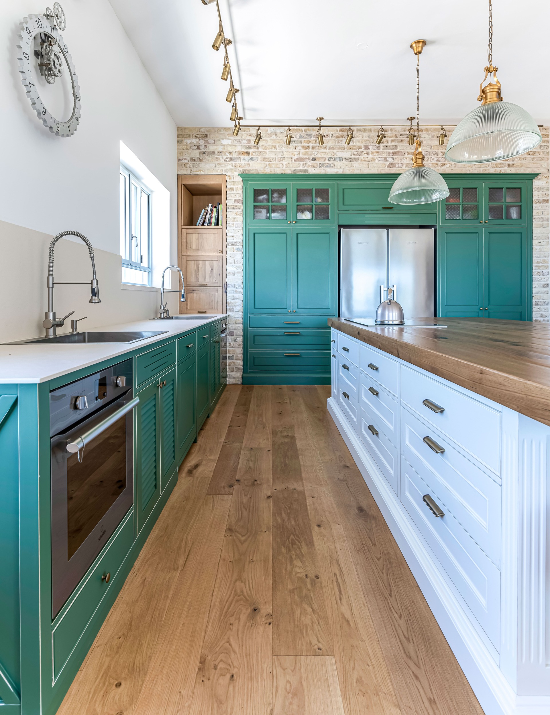 צבוע בצבע זית עומד במטבח.