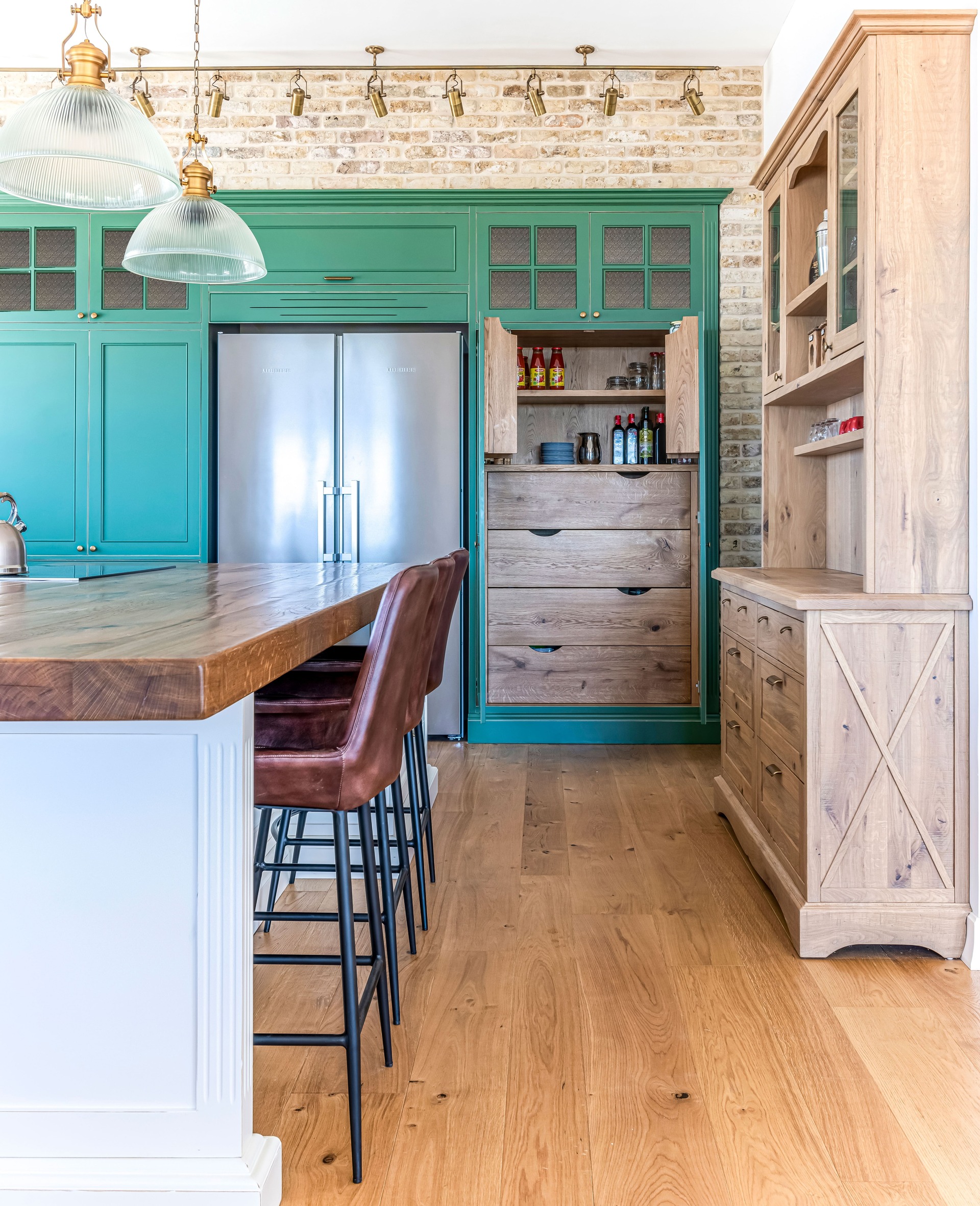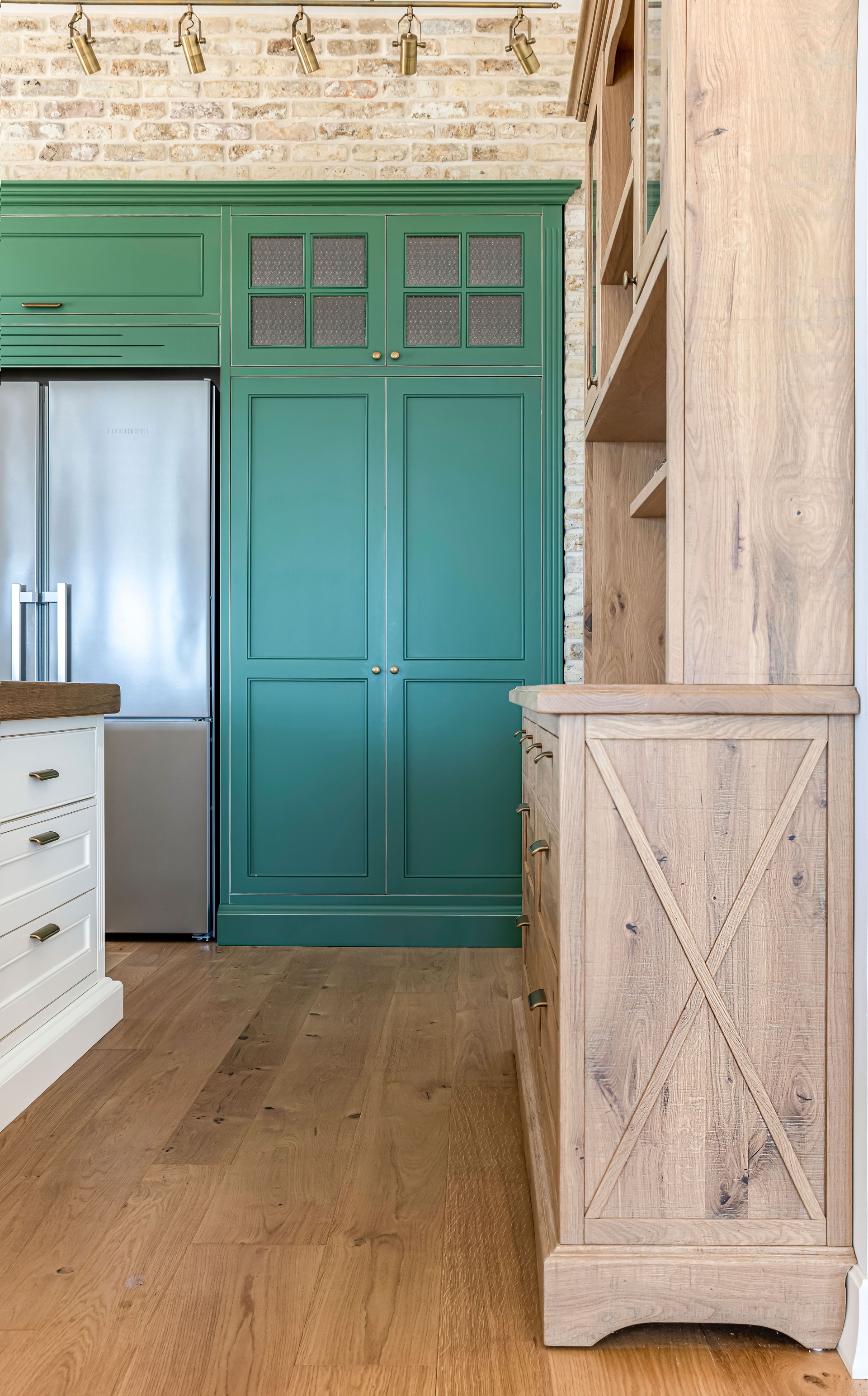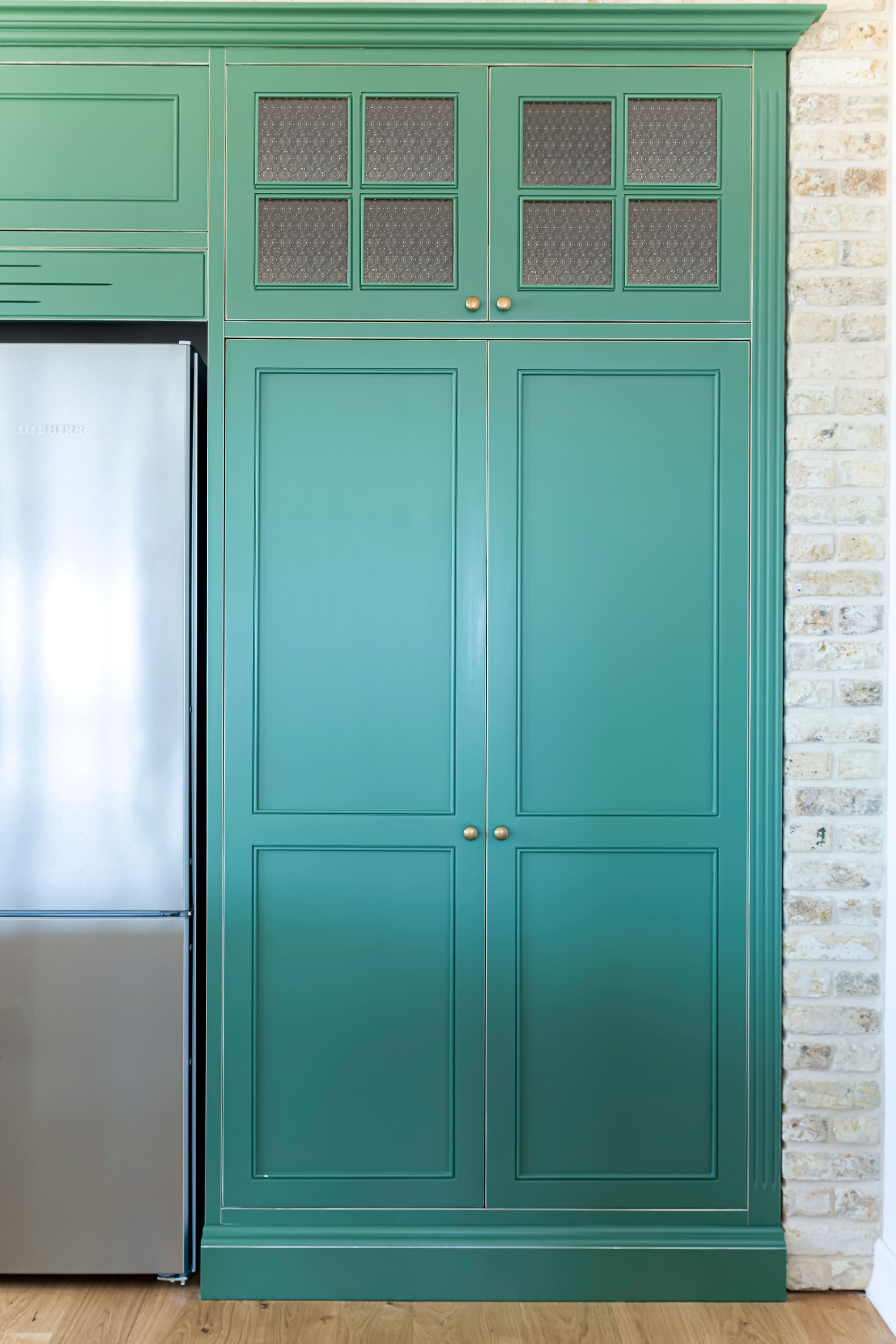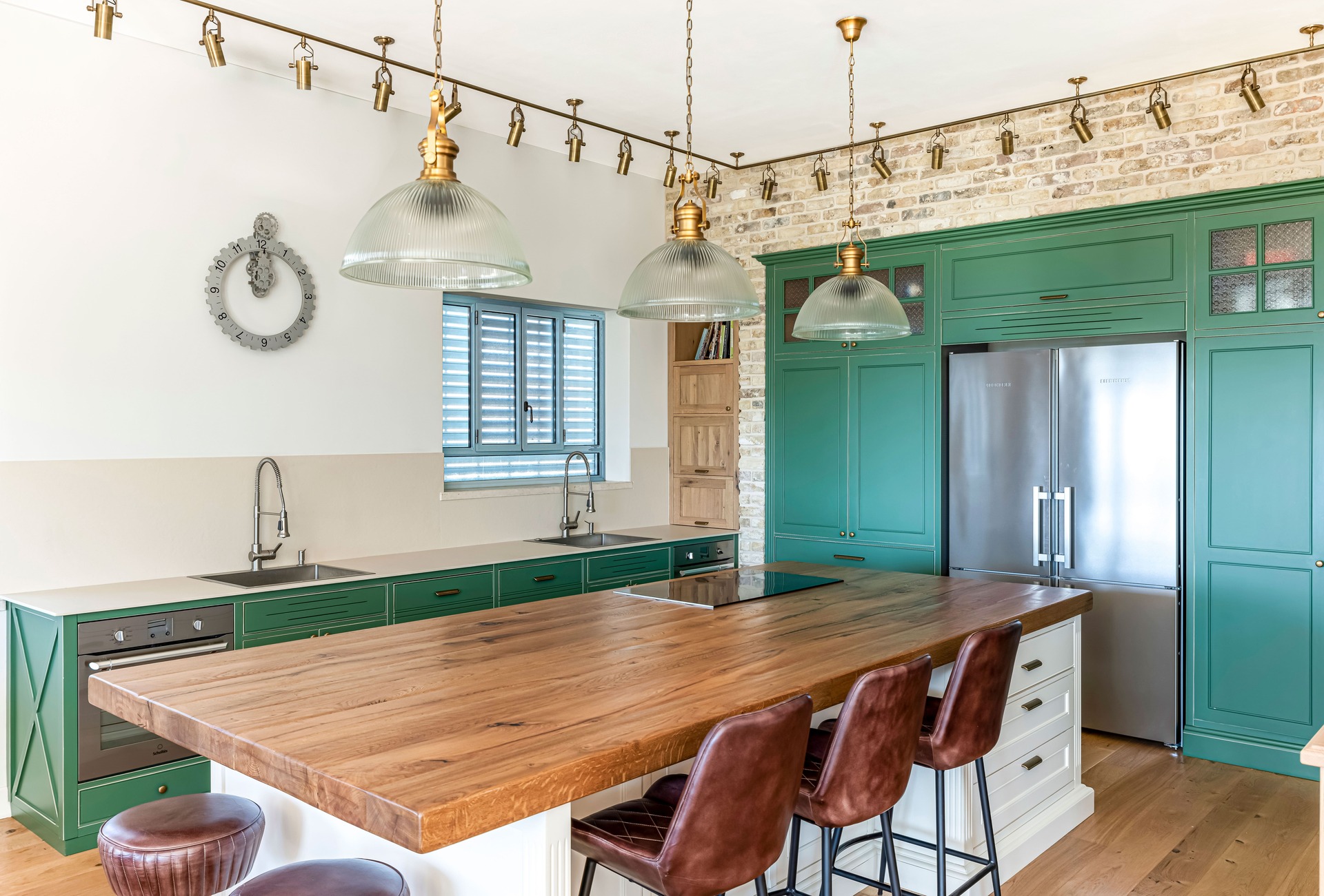 צבוע בצבע זית עומד במטבח.
